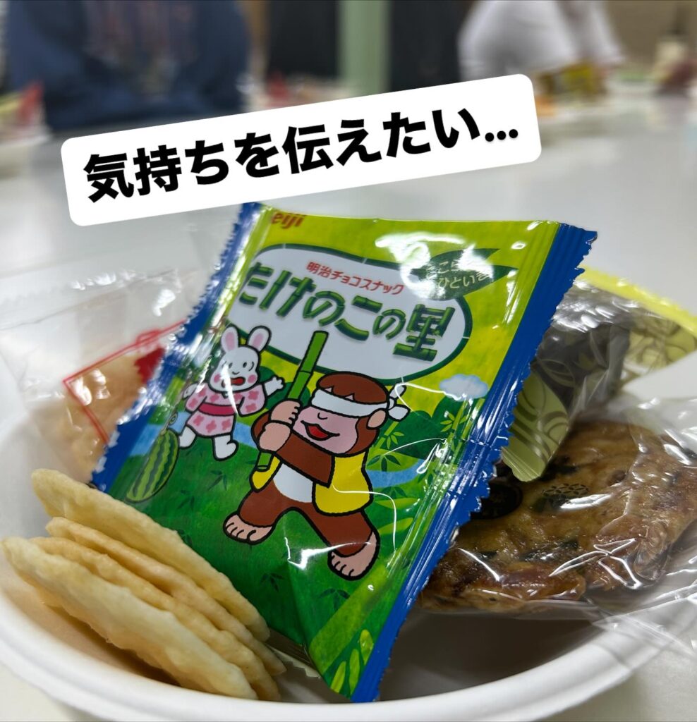 利用者さんがスタッフや他の利用者さんに気持ちを伝えたいから…と皆さんのお菓子を用意してくれました😊